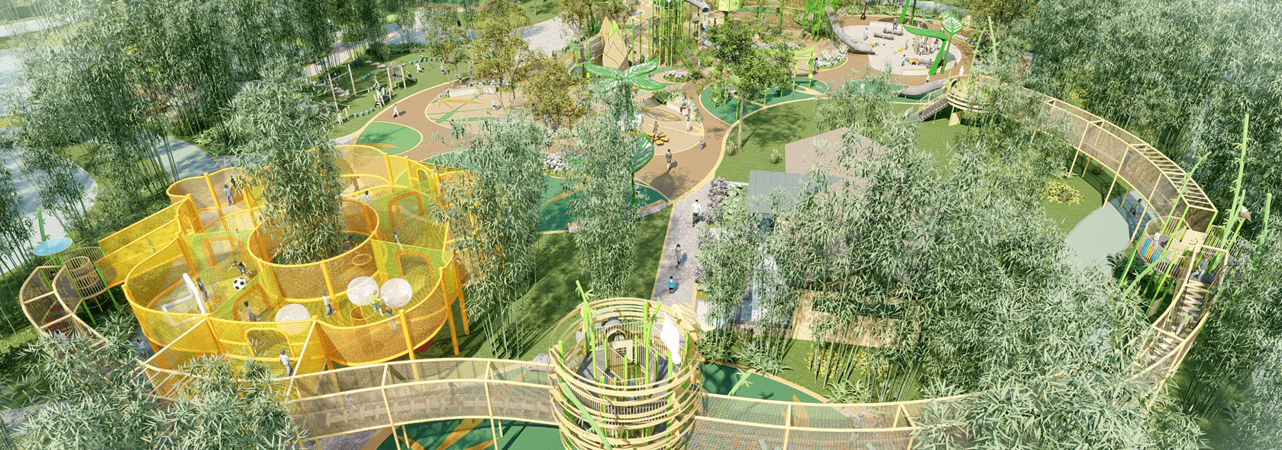 在河南竹浪岛,牧童打造9800㎡全龄段儿童乐园。以“竹”为魂,将传统竹艺与现代无动力设施巧妙融合,构建竹艺、竹韵、竹影三大主题区。